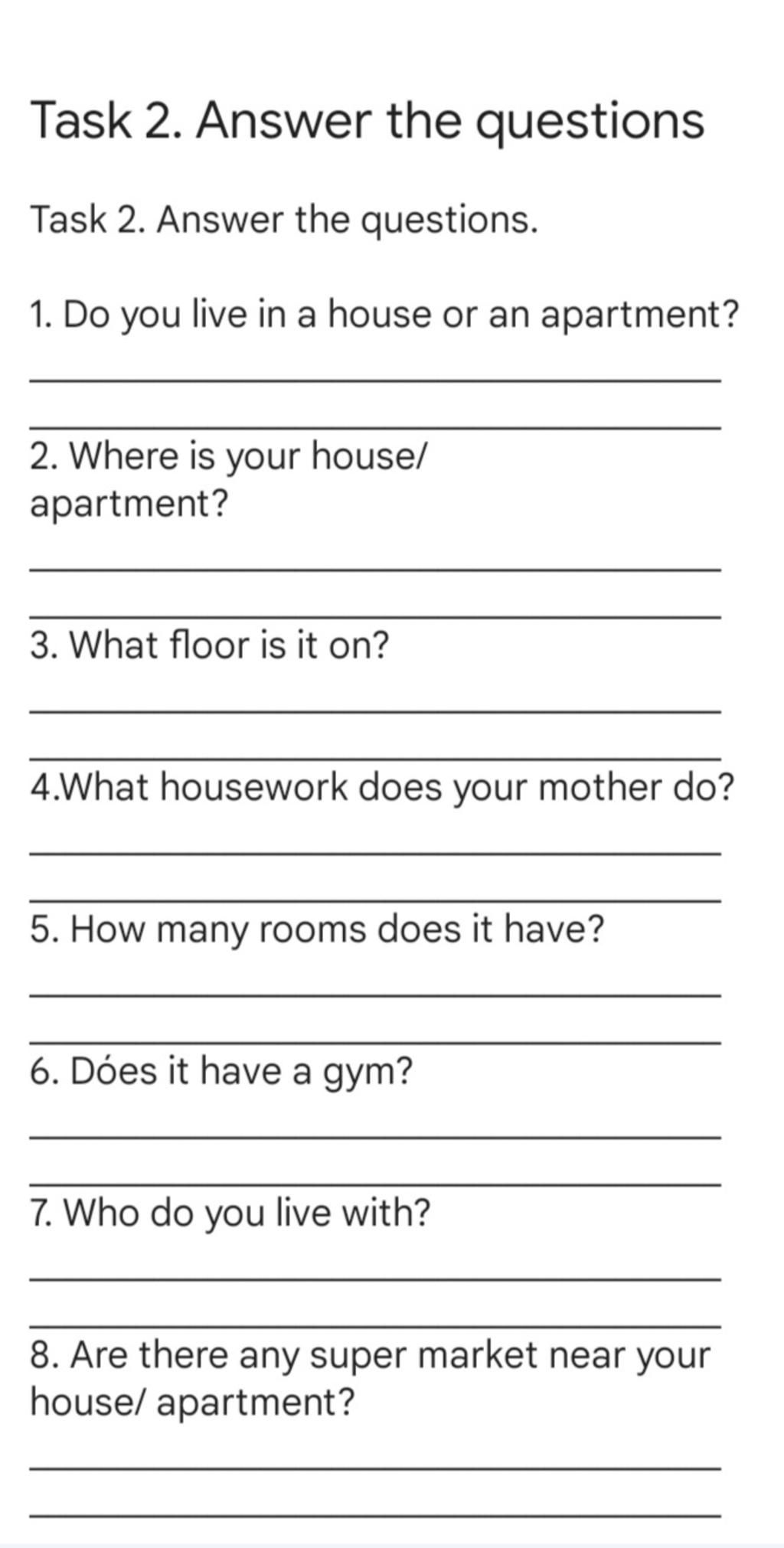 trả lời : I live in a house / I live in an apartment.