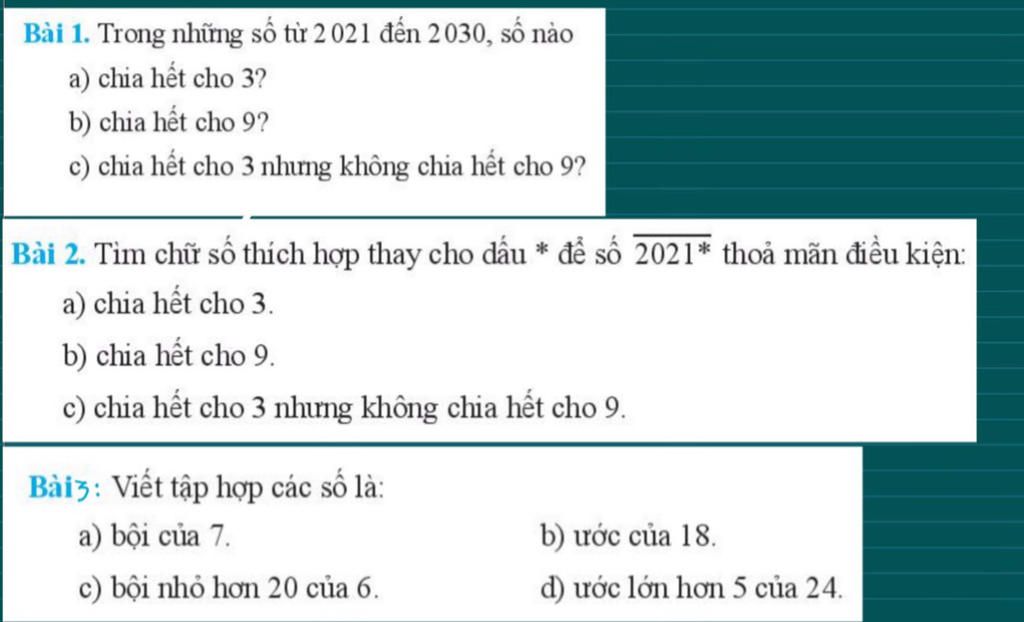 chia hết cho 3 nhưng ko chia hết cho 9 là2022,2028