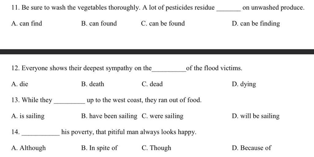14. B in spite of N/Ving ~ although S V : mặc dù