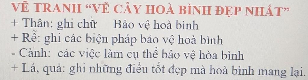 + Lá, quả: ghi những điều tốt đẹp mà hoà bình mang lại.