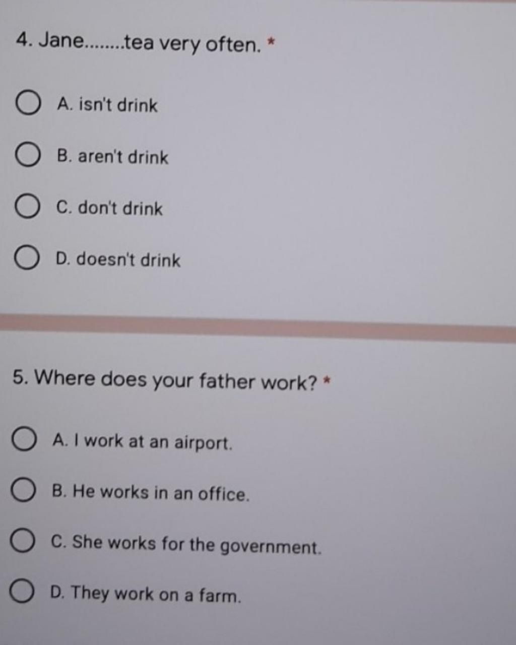 `->` Ta có danh từ your father là danh từ ngôi thứ 3 số ít `=>` Ở câu trả lời sẽ là "he" `+` V(s/es)