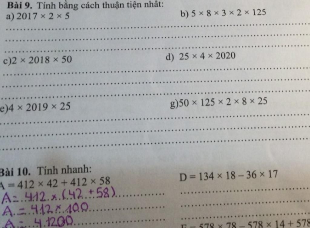 D=(134x18)-(36x17) (không viết cũng được đủ đủ dòng là được tốt thì không cần)