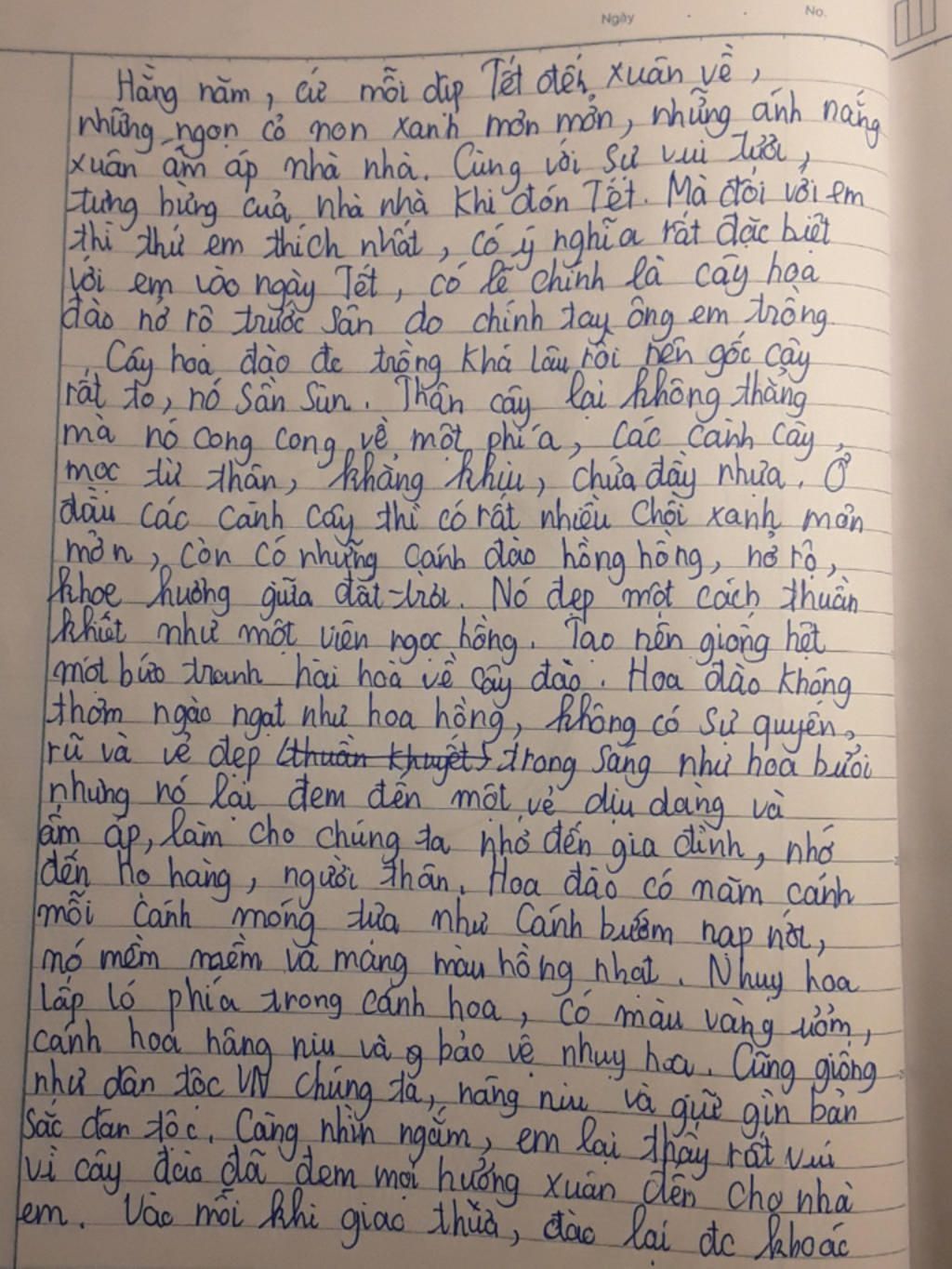 Năm hết tết đến, ba chở em ra chợ hoa để mua cây hoa ngày tết, ngày xuân, hoa nở đẹp vô cùng, cây hoa nào cũng đẹp, cũng đáng yêu nhưng ba em quyết định chọn mua một cây hoa đào - loài hoa đặc trưng cho mùa xuân đất Bắc.