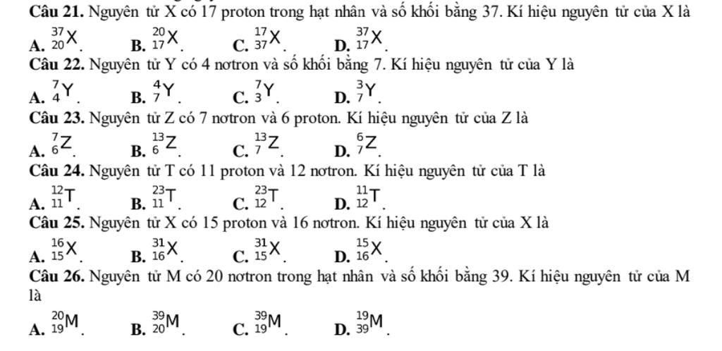 Vậy kí hiệu nguyên tử X là: $\rm ^{37}_{17}X$.