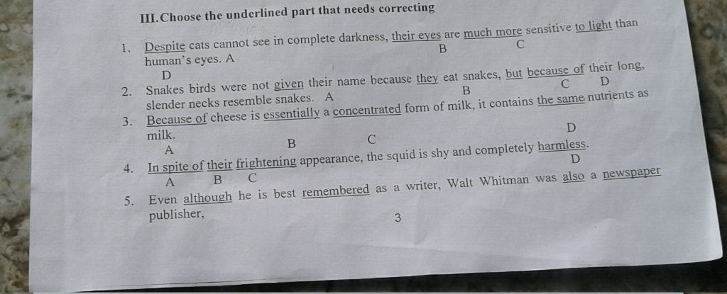 3. A . Because of => bỏ of ( chỉ có because cheese)