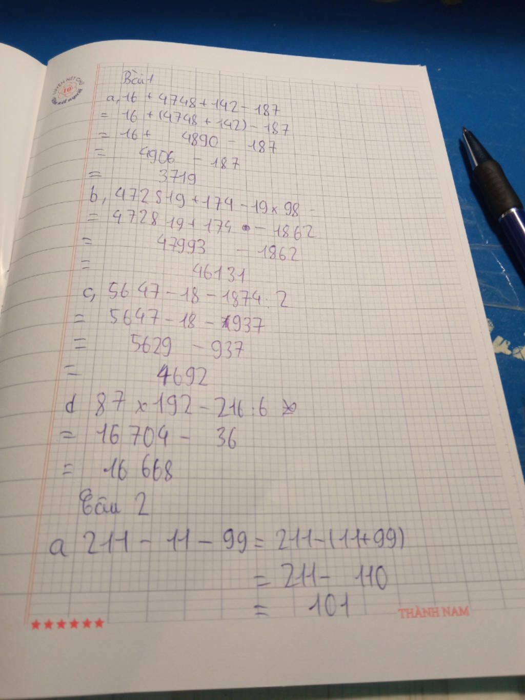 Bài 2: Tính bằng cách thuận tiện nhất: