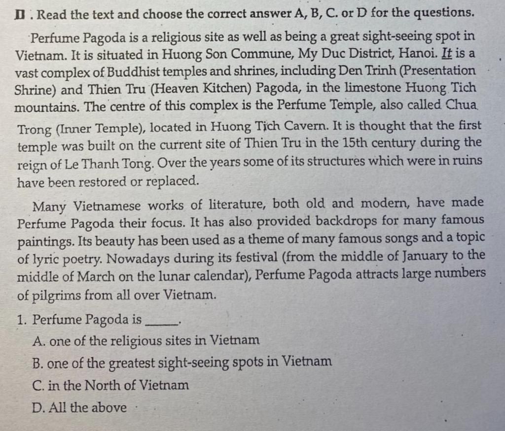 D. Read the text and choose the correct answer A, B, C. or D for the questions.