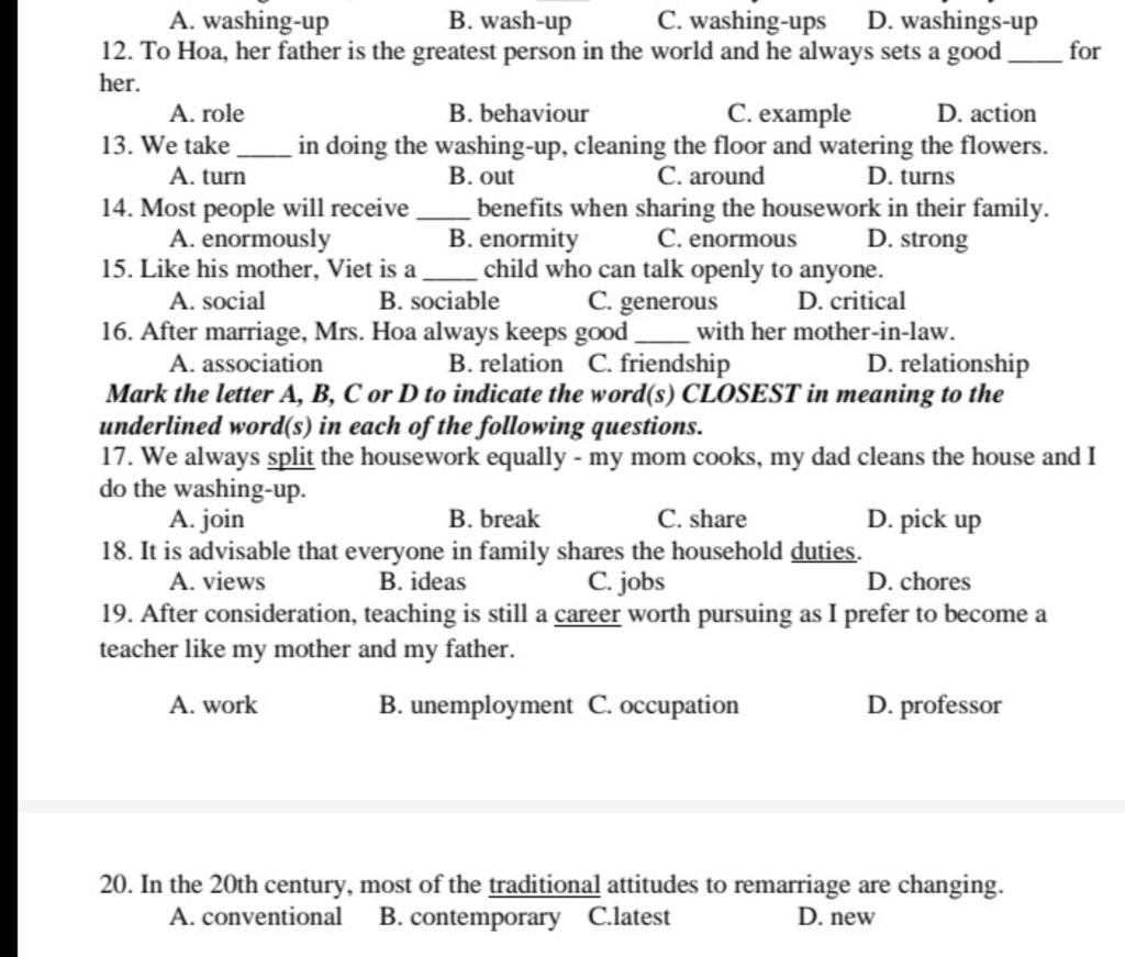 in doing the washing-up, cleaning the floor and watering the flowers.