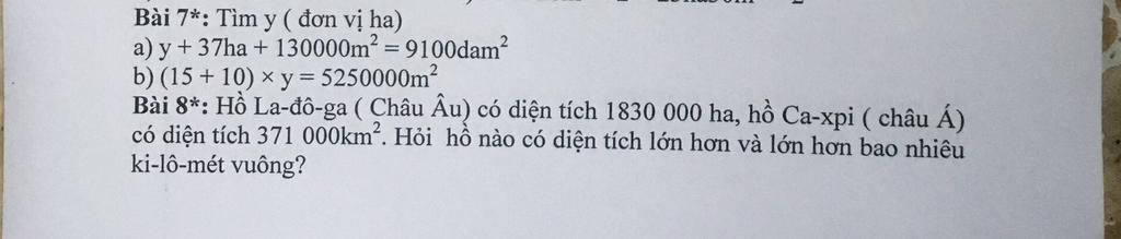 Hồ ca - xpi có diện tích lớn hơn hồ la- đô - ga và lớn hơn số ki-lô-mét là :