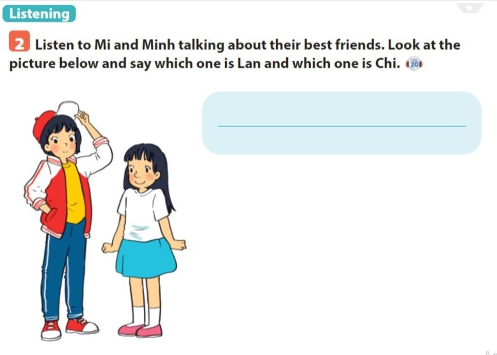 Lan is the girl wearing a red and write jacket and a red cap . Chi is the girl wearing a white T-shirt and blue skirt.