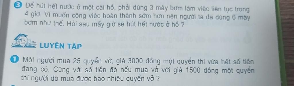 Số tiền của người đó là : 3000x 25= 75000 (đồng) Số vở loại 1500 đồng mua được là: 75000: 1500= 50 (quyển) Đáp số: 50 quyển