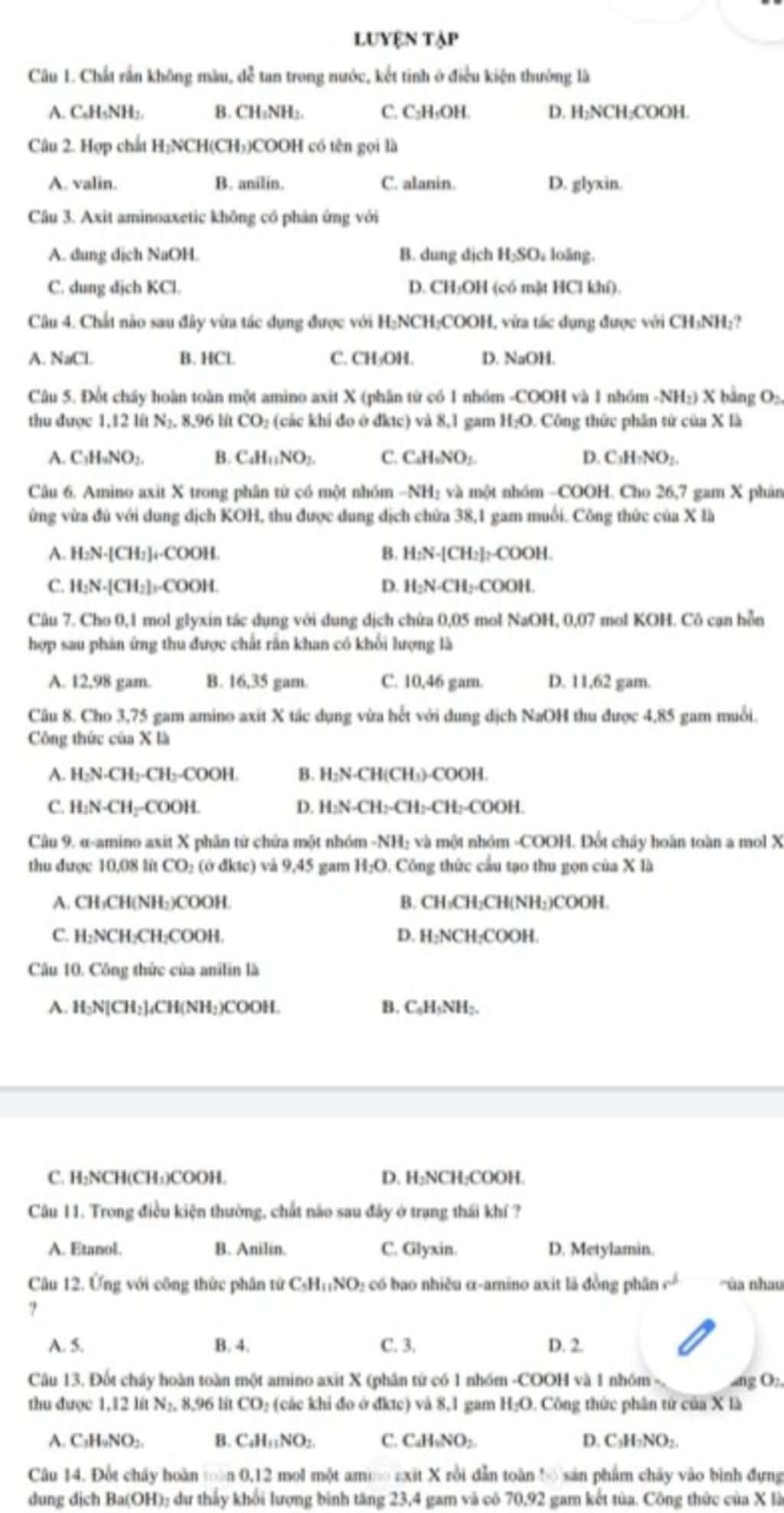 Câu 3. Axit aminoaxetic không có phản ứng với