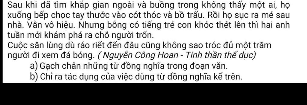 a) Từ đồng nghĩa trong đoạn văn là: khám phá, tìm săn lùng; chọc tay, sục