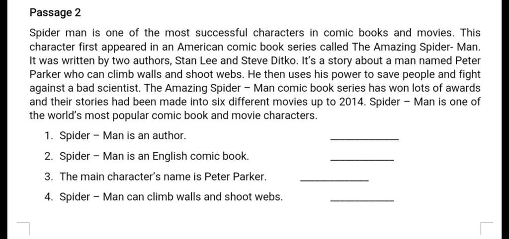 ⇒ Spider Man là một bộ truyện tranh, không có ở ngoài đời