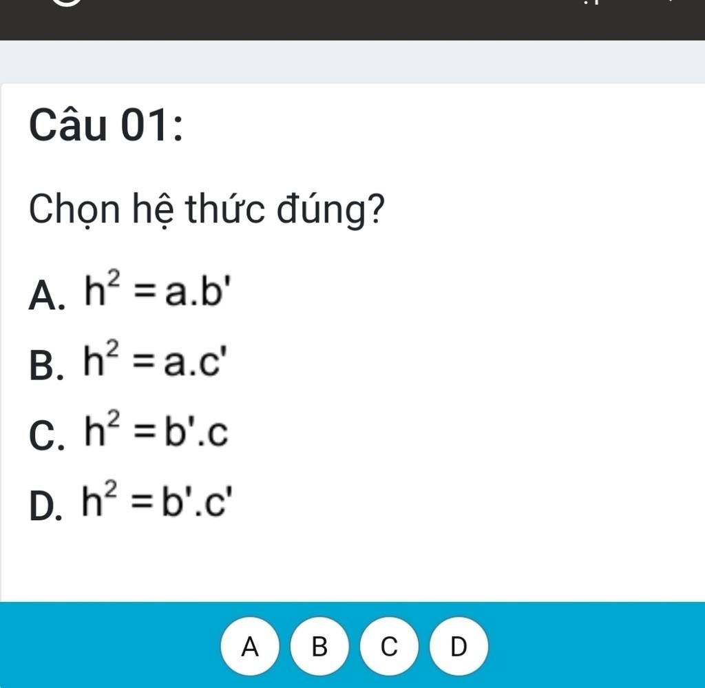 chiều cao bằng bình phương 2 cạnh góc vuông