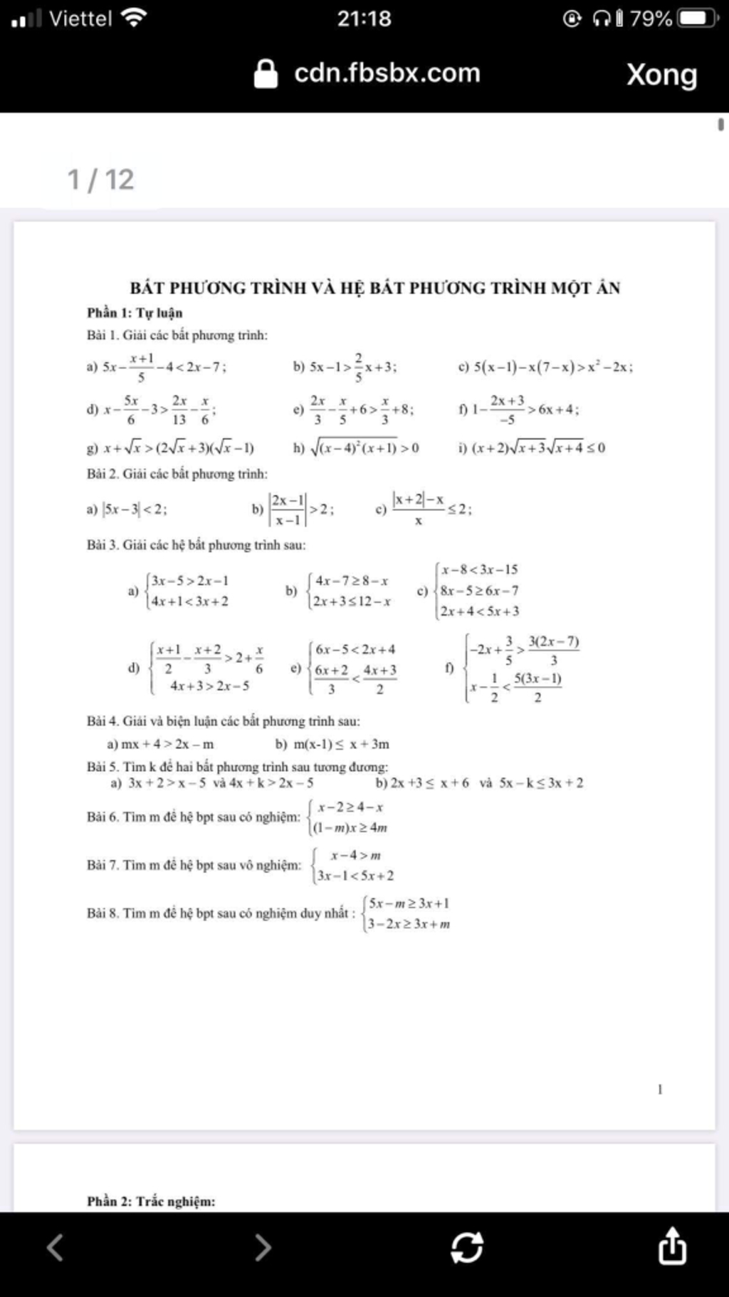 BÁT PHƯƠNG TRÌNH VÀ HỆ BÁT PHƯƠNG TRÌNH MỘT ẢN