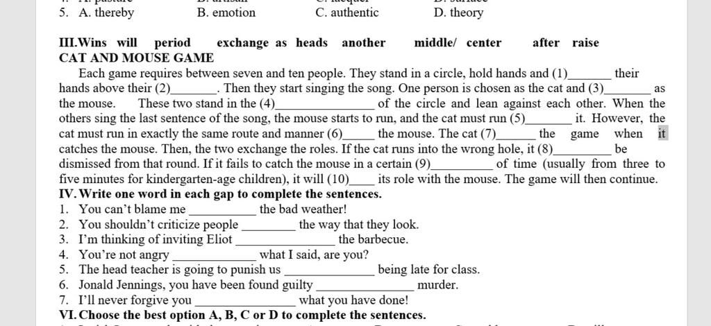 IV. Write one word in each gap to complete the sentences.