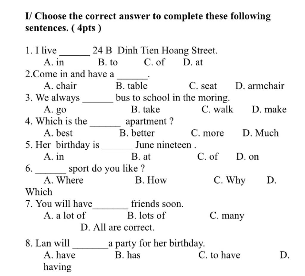 `7`.All are correct(Hình thức A,B,C đều dùng được với N(số nhiều đếm được)
