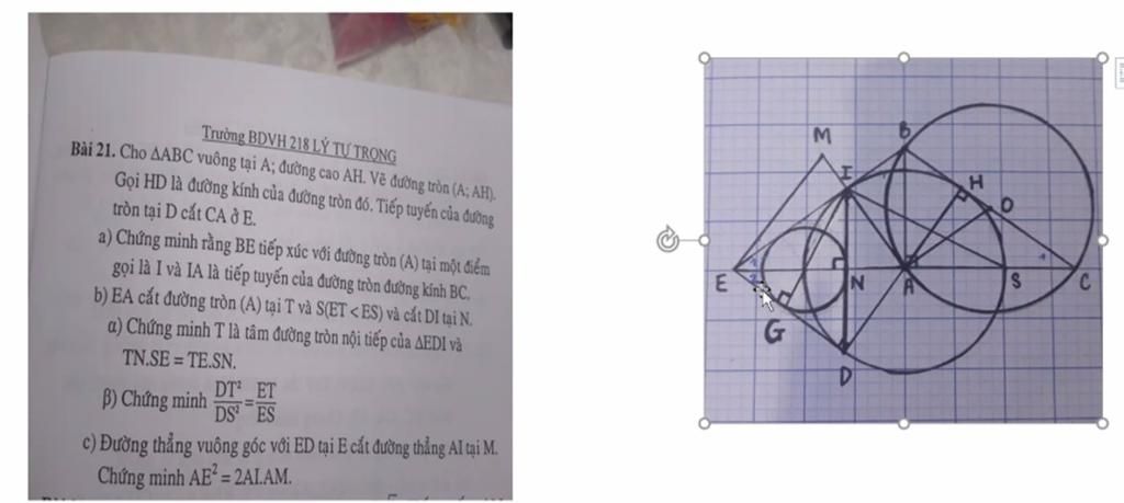 Bài 21. Cho AABC vuông tại A; đường cao AH. Vẽ đường tròn (A; AH).