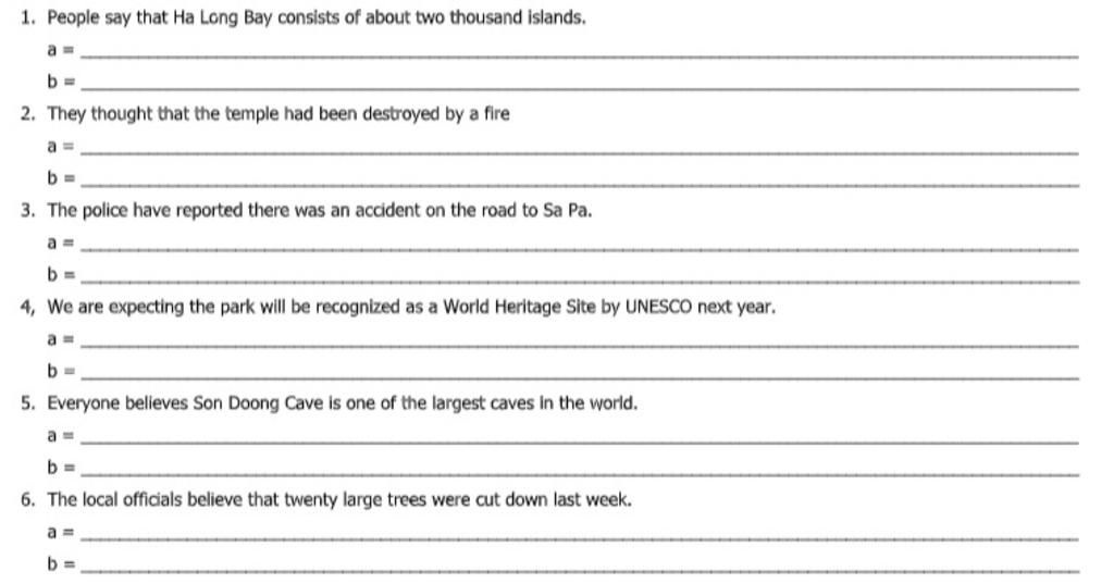 `-` Chủ động : S + say/belive/think/know/expect/report + that + S + V + O