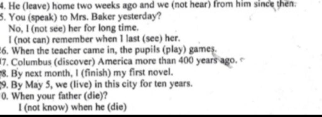 4. left (ago: dùng QKD) _ haven't heard (since: HTHT)