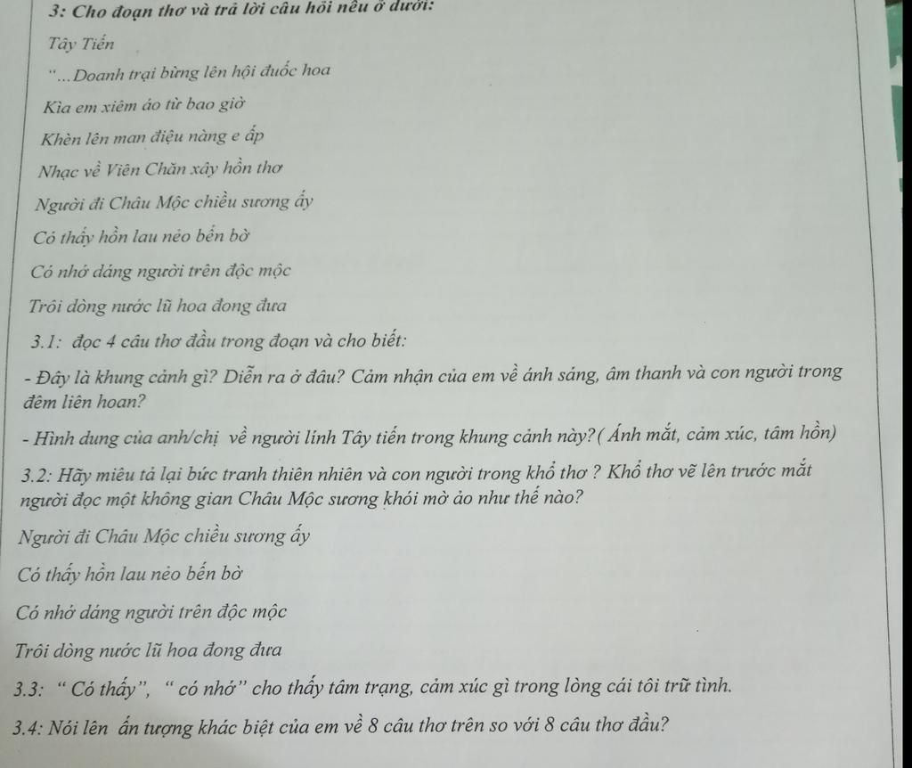 Thiên nhiên Tây Bắc vốn nổi tiếng với con sông Mã, một dòng sông đã chứa trong nó biết bao dữ dội. Nhưng ở đây, dòng sông Mã đã hiện lên với sự nhẹ nhàng đến kỳ lạ. Những cánh hoa rừng ko bị ''dồi lên dập xuống'' mà là “Trôi dòng nước lũ hoa đong đưa''. Từ láy “đong đưa” được sử dụng rất gợi: Cánh hoa rừng như cũng quyến luyến con người. Cánh hoa rừng như bàn tay vẫy chào người lính, tiễn người lính vượt sông đi đánh giặc.