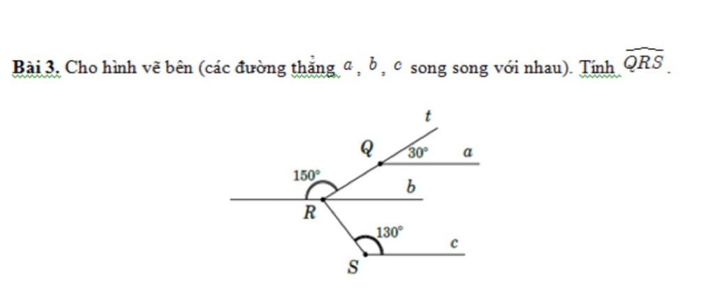 ⇒ `\hat{tQa}` $=$ `\hat{QRb}` $=$ $30^\circ$ ( 2 góc đồng vị )