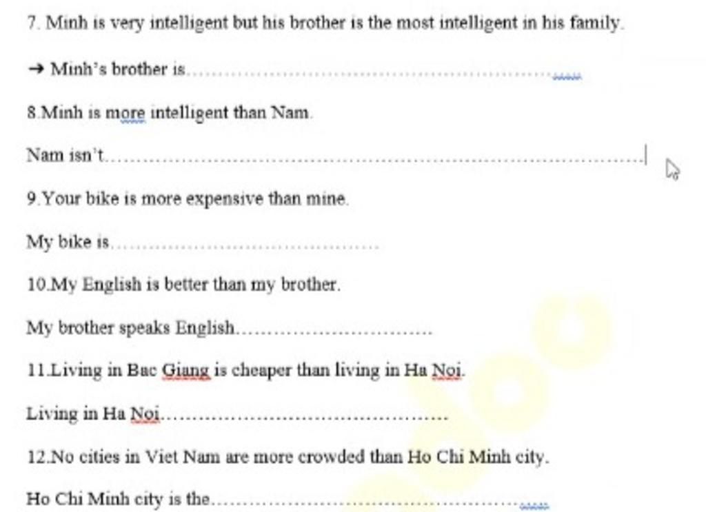 7. Minh's brother is more intelligent than him.