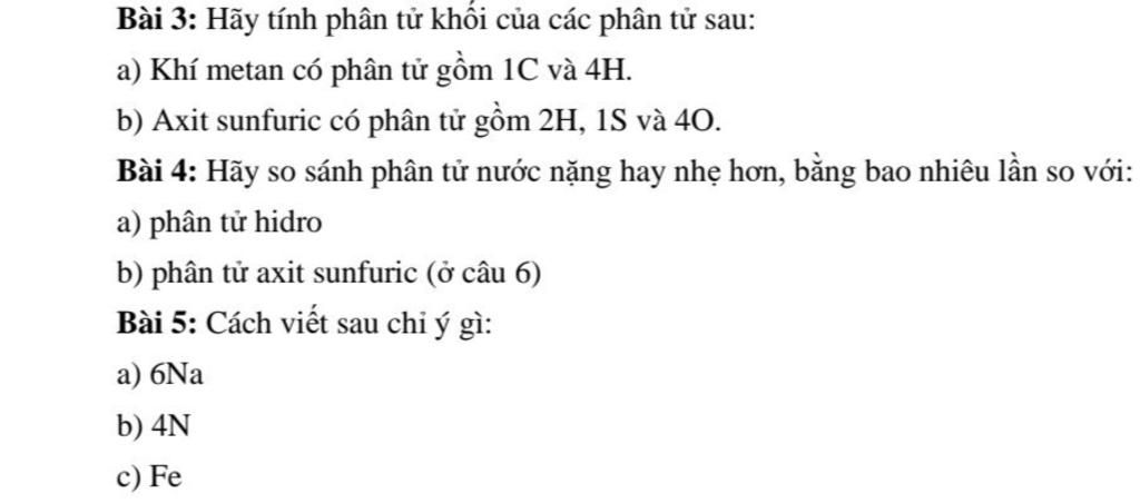 Bài 3: Hãy tính phân tử khối của các phân tử sau: