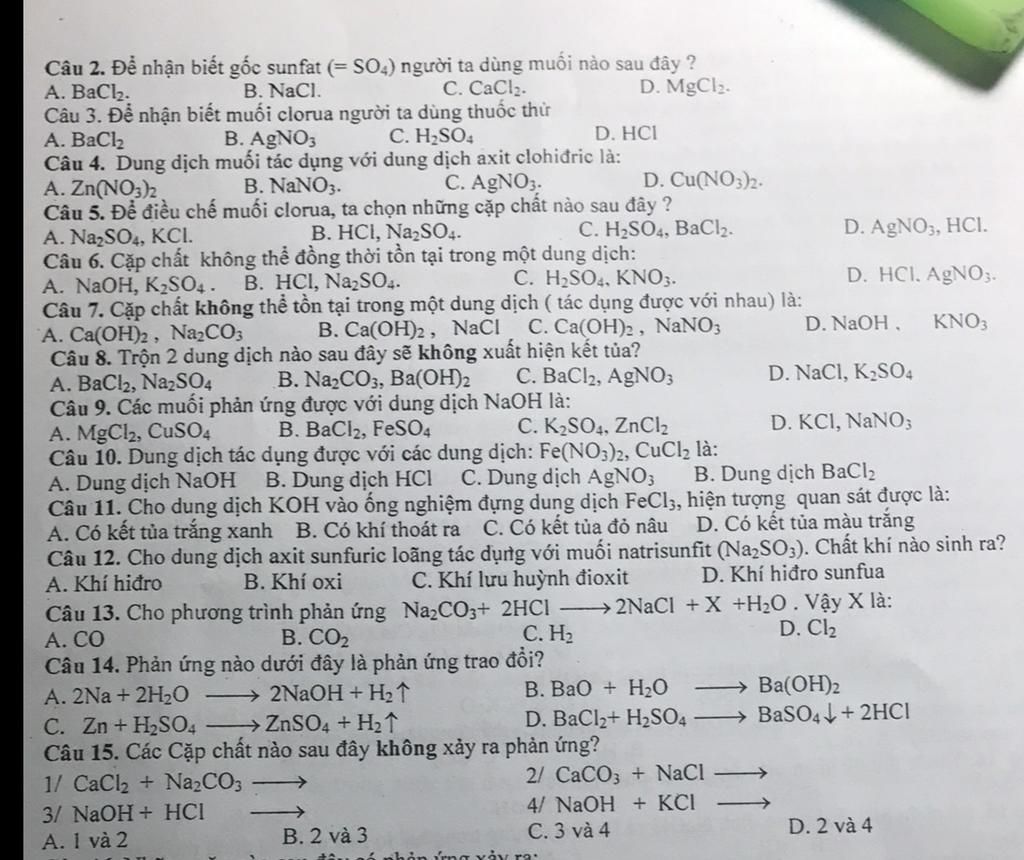 `NaCl + K_2SO_4` không thể tạp thành chất kết tủa