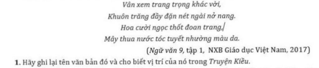 1. Hãy ghi lại tên văn bản đó và cho biết vị trí của nó trong Truyện Kiều.
