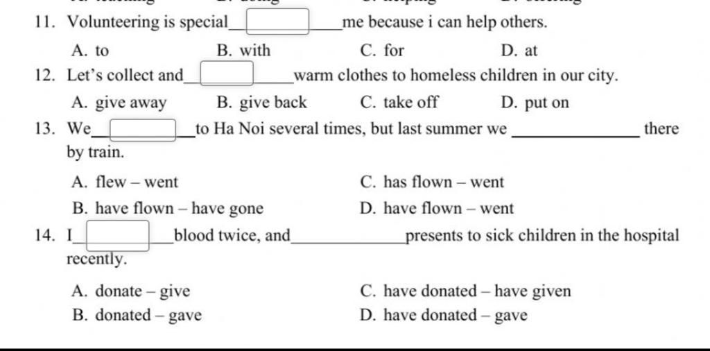13. D (several times: một hành động lặp đi lặp lại trong QK: HTHT; last summer: QKĐ)