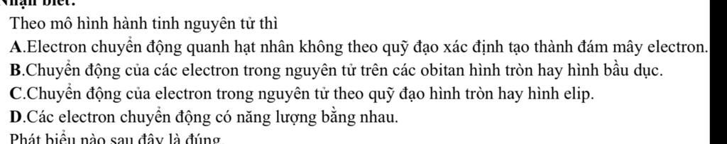 Theo mô hình hành tinh nguyên tử của Rutherford, các electron chuyển động quanh hạt nhân theo các quỹ đạo elip hoặc tròn, giống như các hành tinh quay quanh mặt trời trong hệ mặt trời.