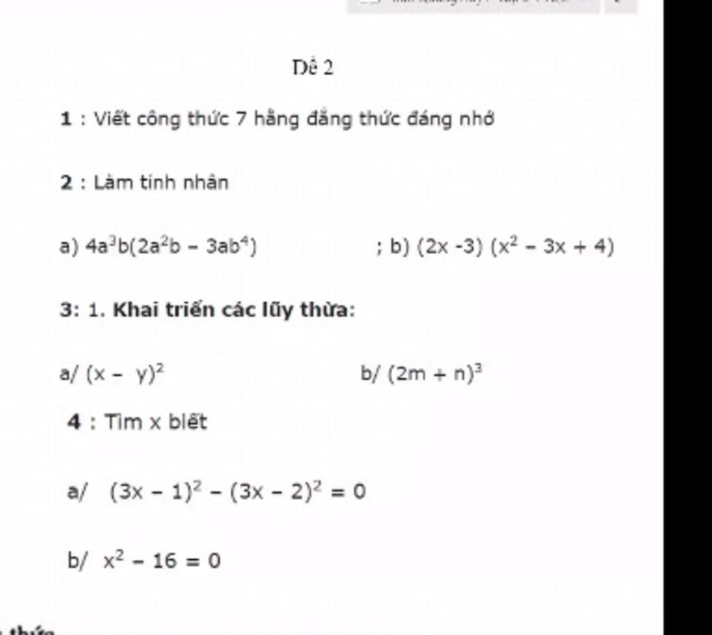 Đáp án: bài 1 (a+b) ^2 = a^2 + 2ab + b^2