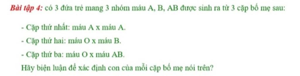 - Xét cặp thứ ba: Máu O x máu AB.