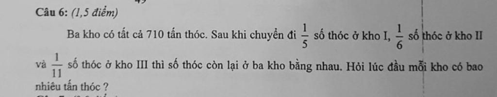 Vậy số gạo ở ba kho lần lượt là :`250, 240, 220` tấn thóc
