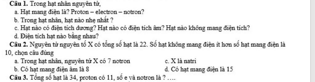 c,hạt có điện tích dương là proton , còn điện tích âm là electron