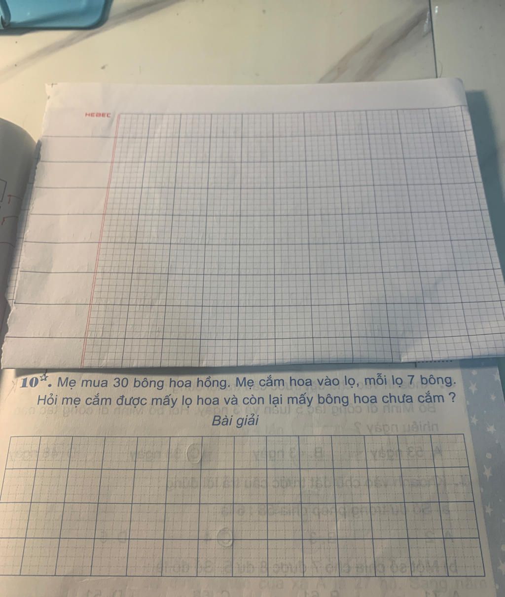 Mẹ cắm được số lọ hoa và còn lại số bông boa chưa cắm là