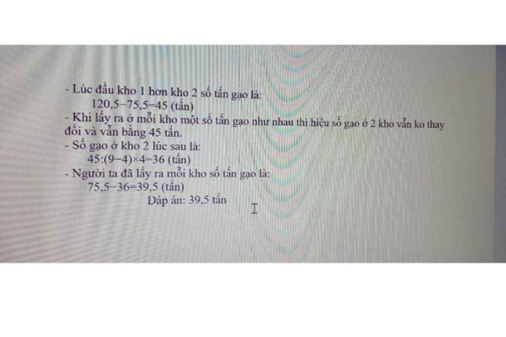 số gạo ở kho 1 và kho 2 sau khi chuyển bằng nhau mà ạ