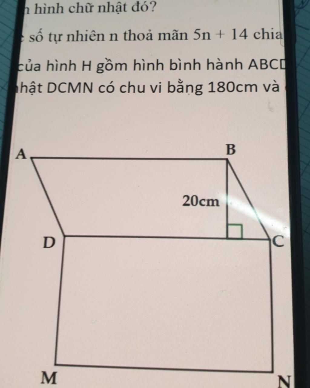 Nửa chu vi hình chữ nhật `DCMN` là :