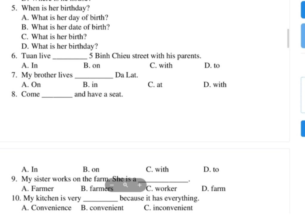 -> dùng on để nói sống ở trên đường 5 Binh Chieu .