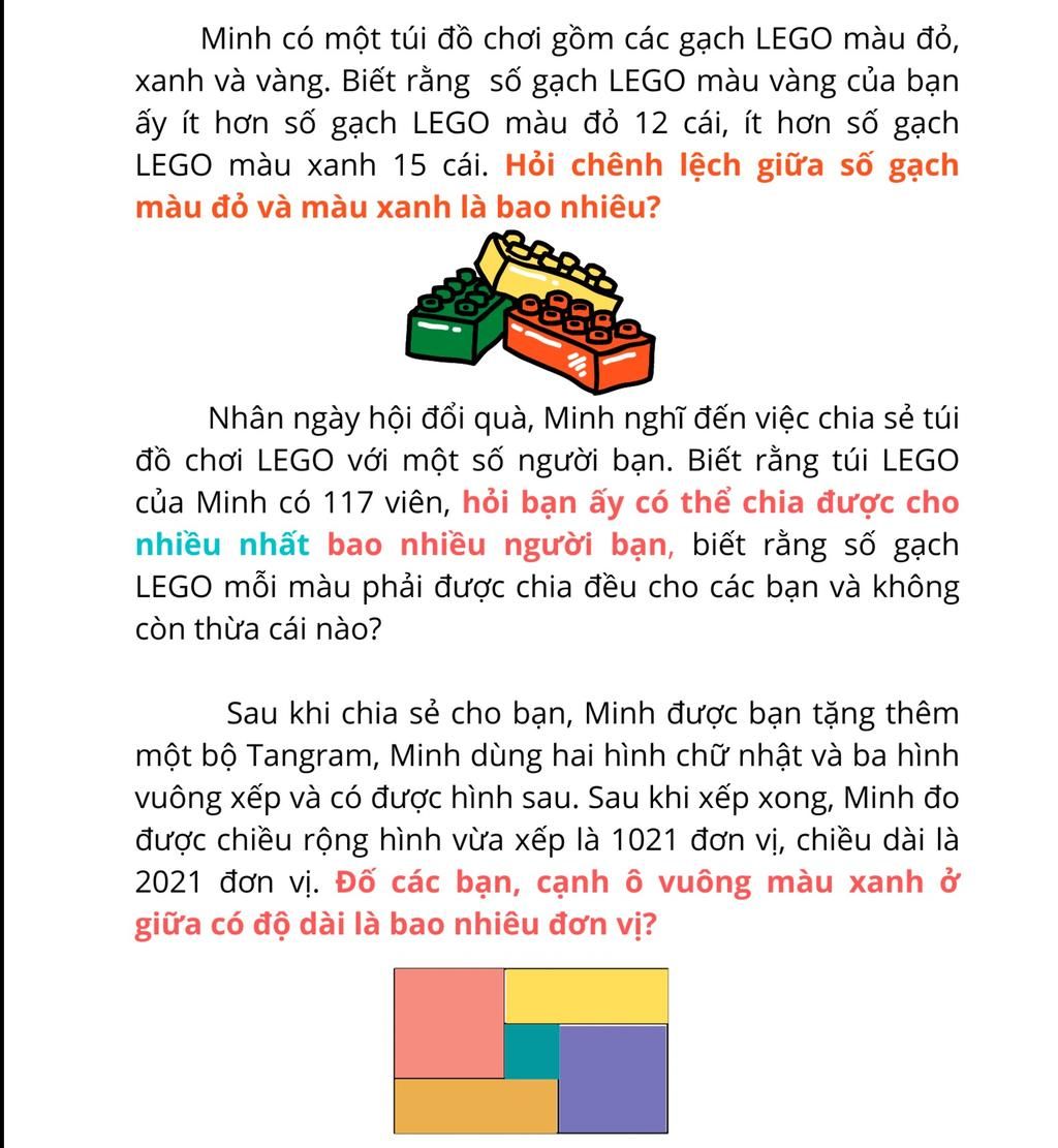 vậy Minh có thể chia nhiều nhất số LEGO cho 3 bạn