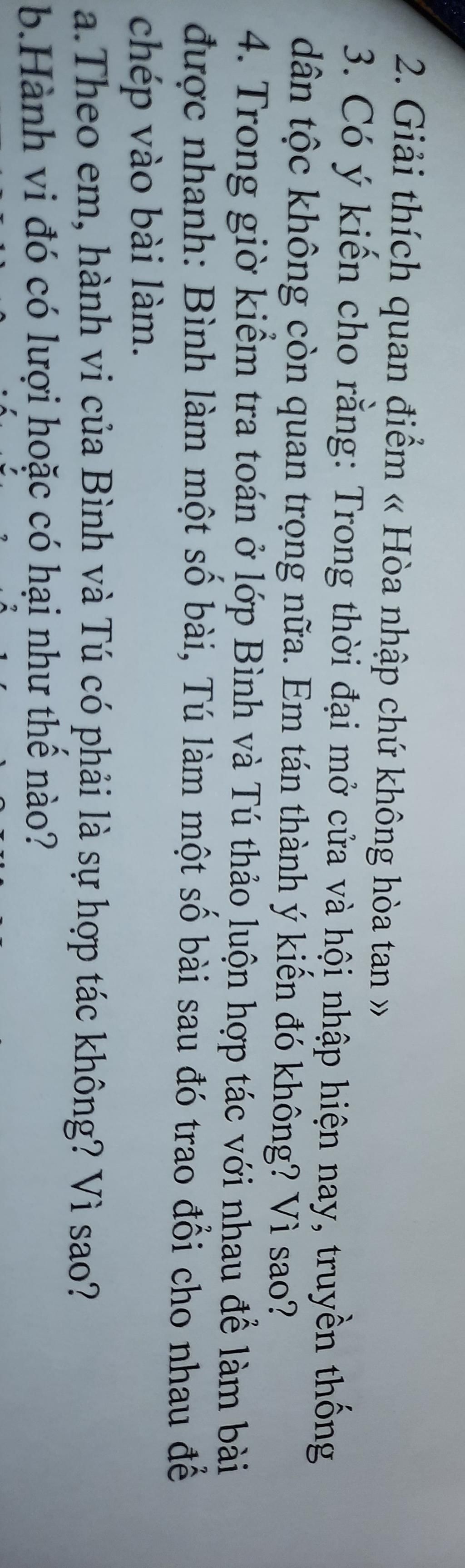 + Tuy nhiên trong quá trình ấy chúng ta luôn biết kế thừa, giữ gìn, phát huy truyền thống dân tộc, tiếp thu có chọn lọc, không đánh mất bản sắc riêng của mình, không bị đồng hóa bởi các dân tộc khác đó là không hòa tan.