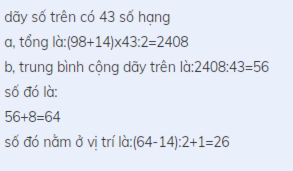 Vậy số 64 là số hạng thứ (64-12): 2 = 26
