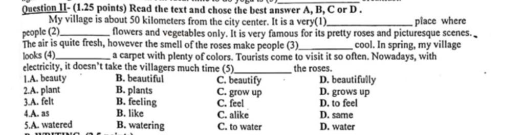 1.B(place là danh từ, trước nó phải là 1 tính từ)