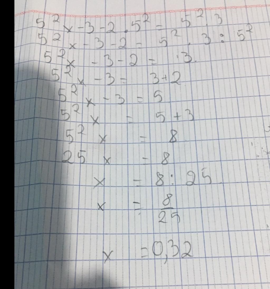 `5^(2x - 3 - 2) . 5^2 = 5^(2 . 3)`