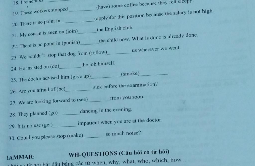 `=>` Afraid of + Ving : Sợ làm việc gì