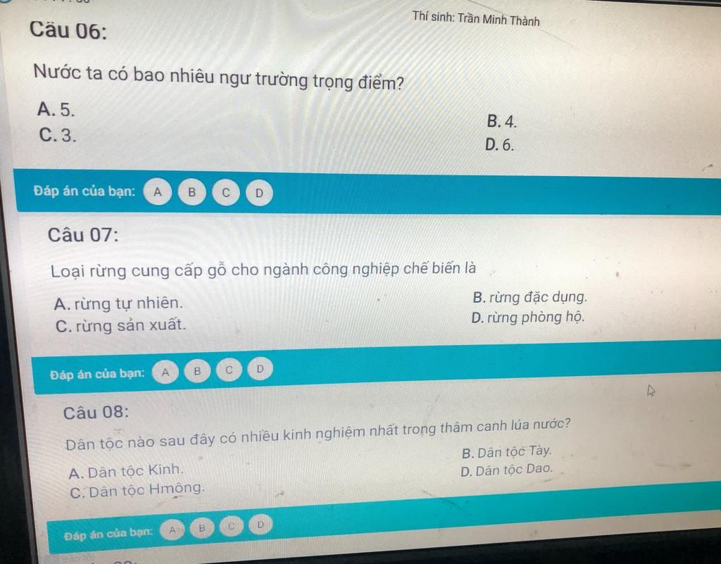 Câu 7: C.rừng sản xuất.