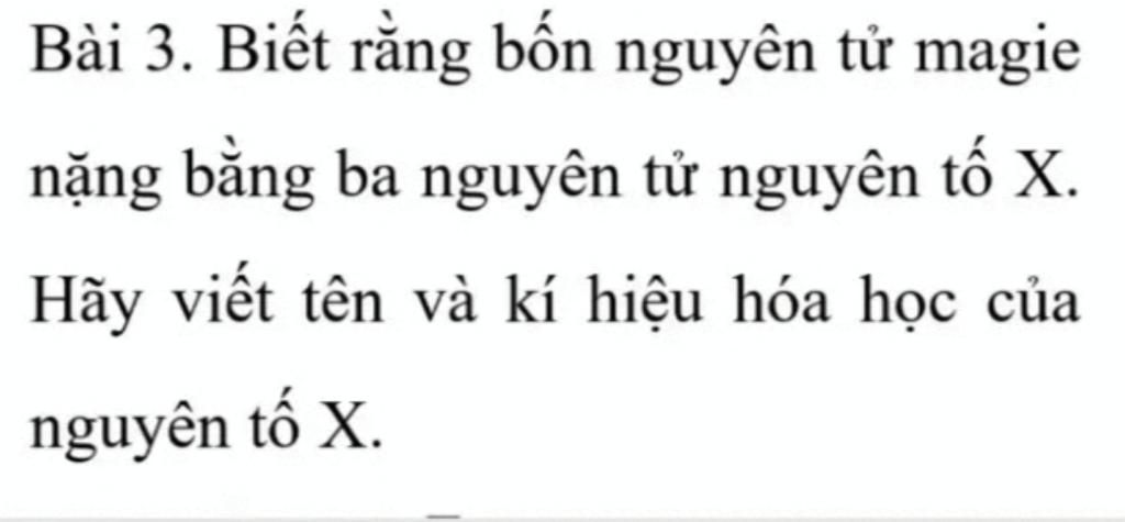 Bốn nguyên tử magie nặng bằng ba nguyên tử nguyên tố X