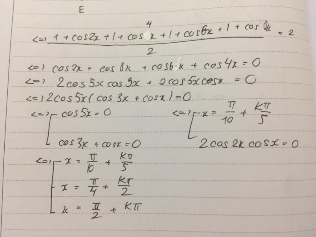 $<-> \cos(2x) + \cos(4x) + \cos(6x) + \cos(8x) = 0$